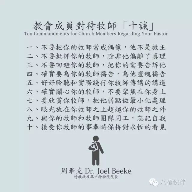 1. 不要把你的牧师当成偶像,不要期望他能做到只有神能做的事,不要把他变成一位救主。